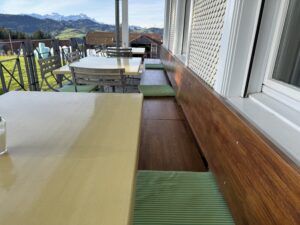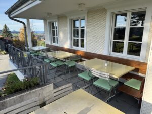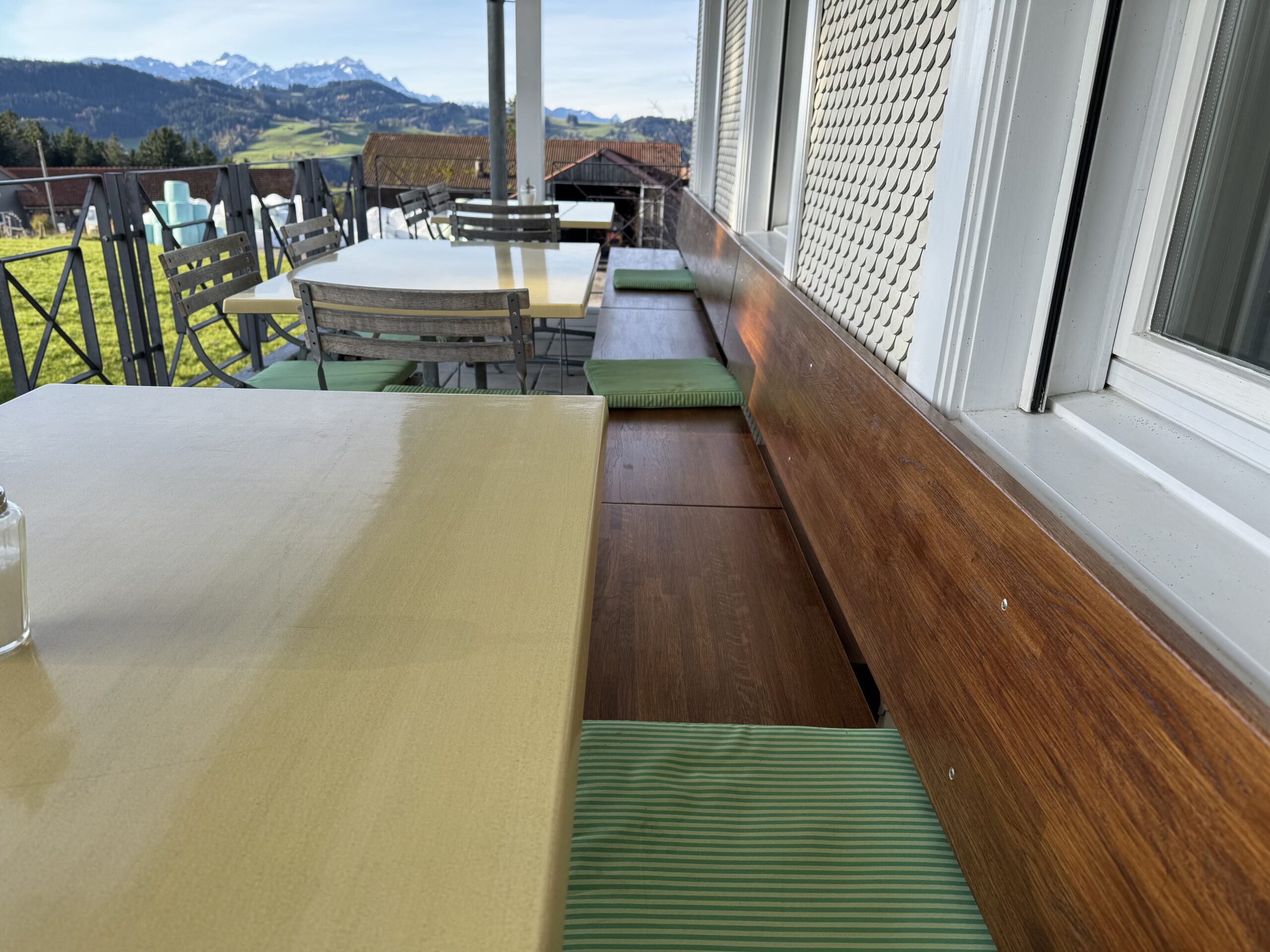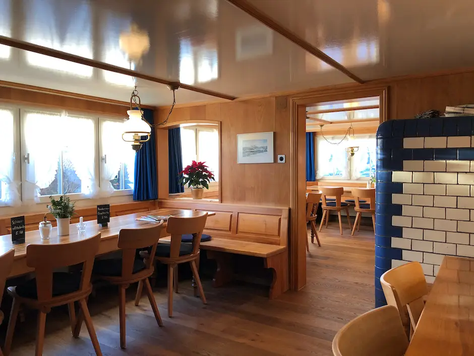 In den zwei gemütlichen Gaststuben mit dem 250 Jahre alten Wandbuffet aus Kirschbaumholz und dem hundertzehnjährigen Backofen pflegen wir eine gut bürgerliche Küche mit Appenzeller Spezialitäten. An den vier grossen Tischen haben rund 30 Personen Platz.