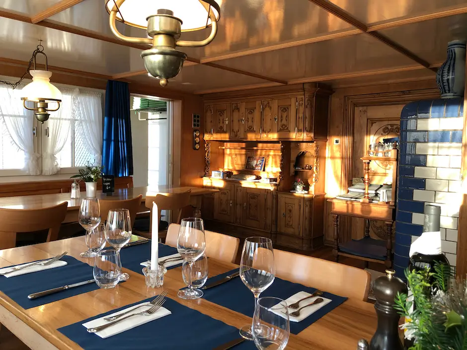 Die Gaststuben sind den ganzen Tag geöffnet. Hier geniessen die Gäste Ihr Frühstück, Ihren Kaffee, Ihr Mittagessen, Ihren Kaffee & Kuchen, das Abendessen mit der Flasche Wein. Für Kinder ist eine Spielsachen-Chästli im Buffet versteckt. Für Jasser legen wir gerne Teppich, Karten und Tafel bereit. In den Gaststuben gibt es kostenlosen Wifi-Empfang.